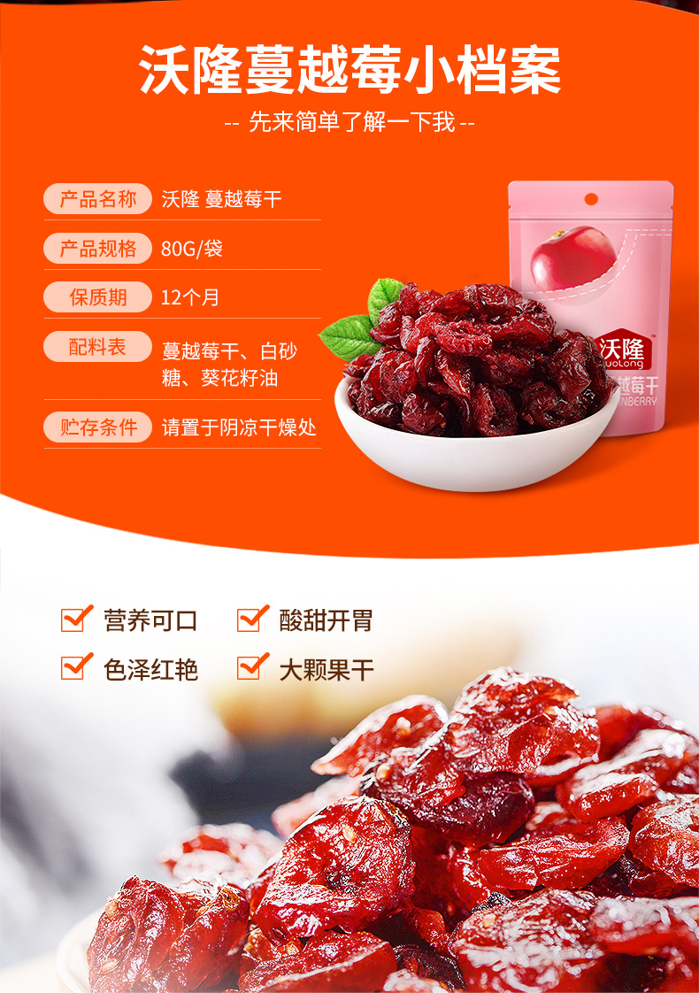 沃隆蔓越莓干80g/袋 烘焙原料零食蜜饯孕妇果干曼越梅干