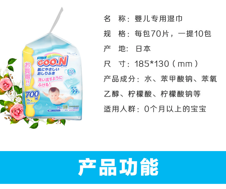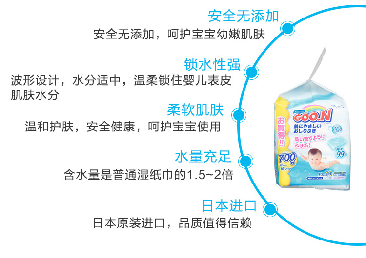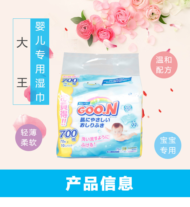 日本大王婴儿宝宝专用湿纸巾70抽*10小包