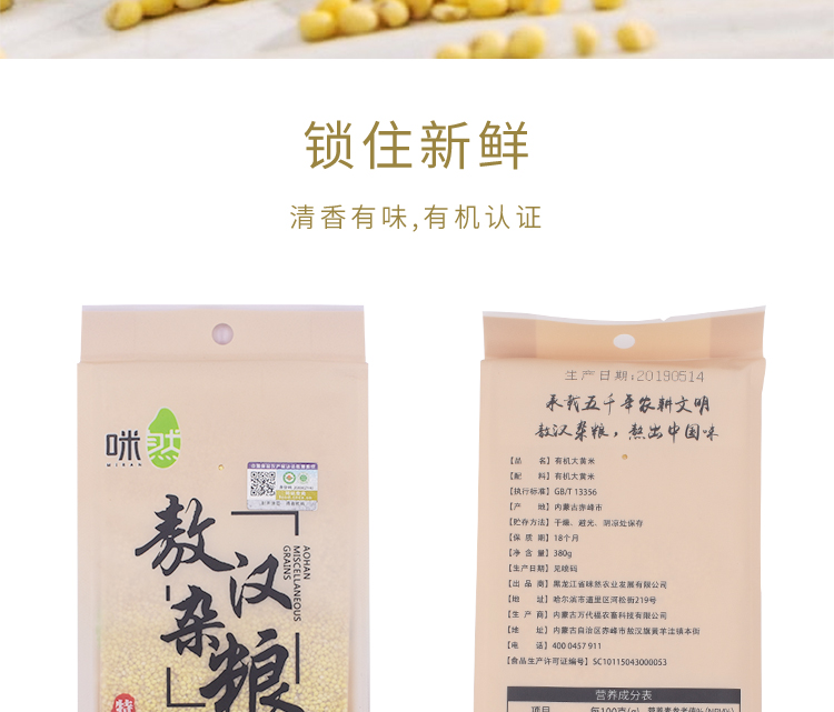 您所在的位置:首页 > 休闲食品  > 粮油调味 > 有机食品  > 咪然有机大黄米380g