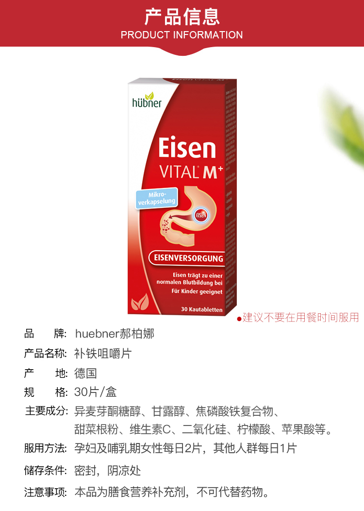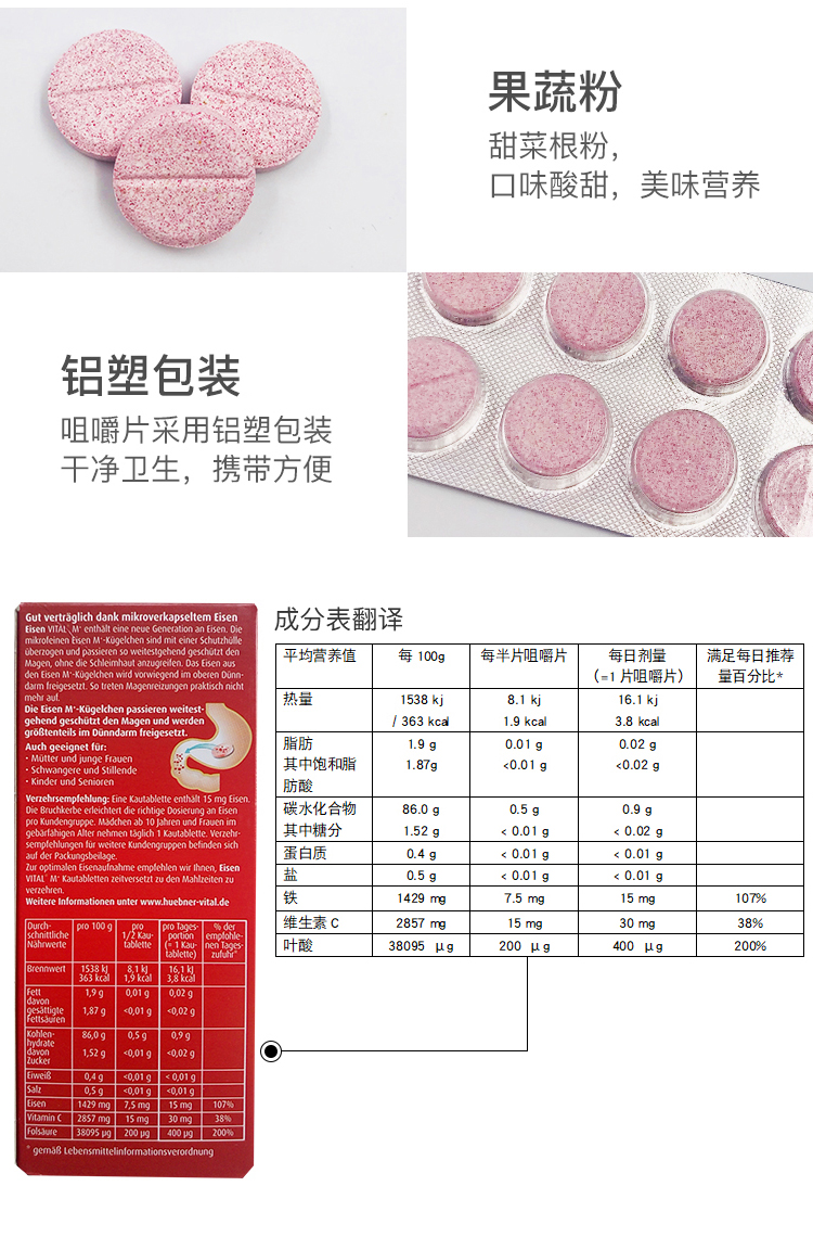 德国hübner郝柏娜补铁咀嚼片 30片