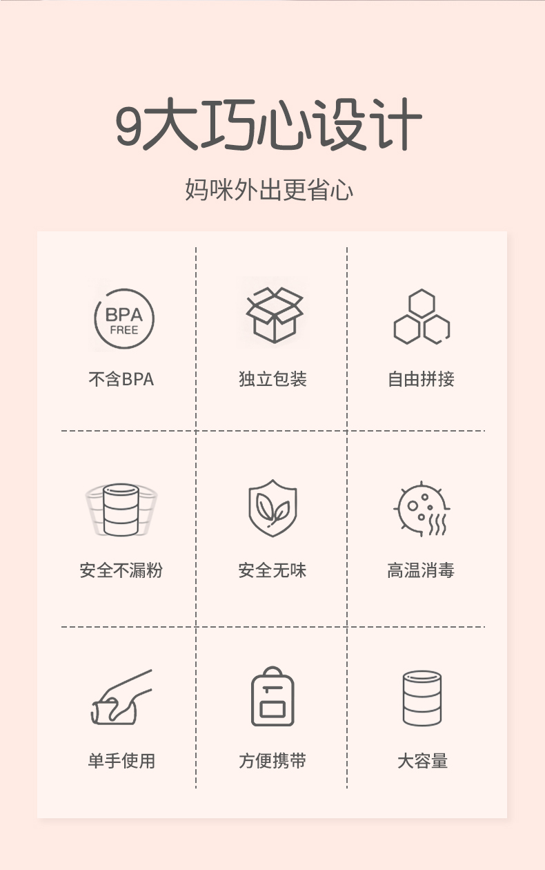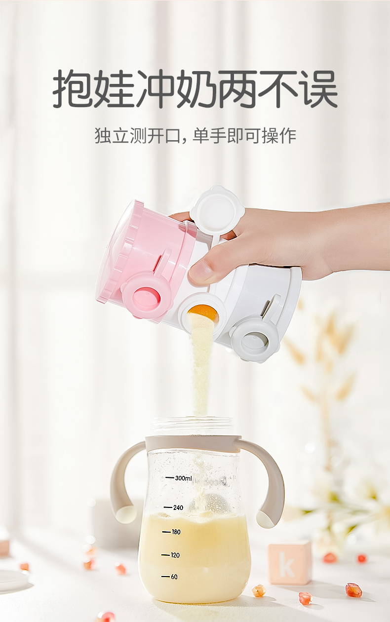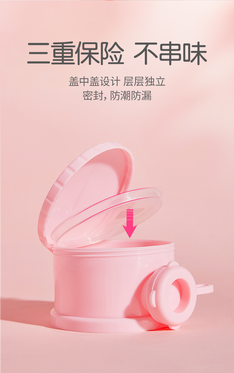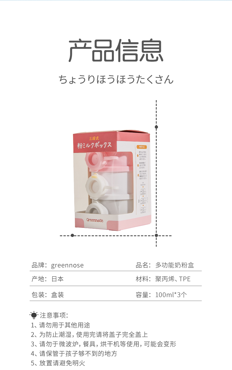 日本绿鼻子greennose婴儿童便携式奶粉格外出分装宝宝辅食盒三层粉色