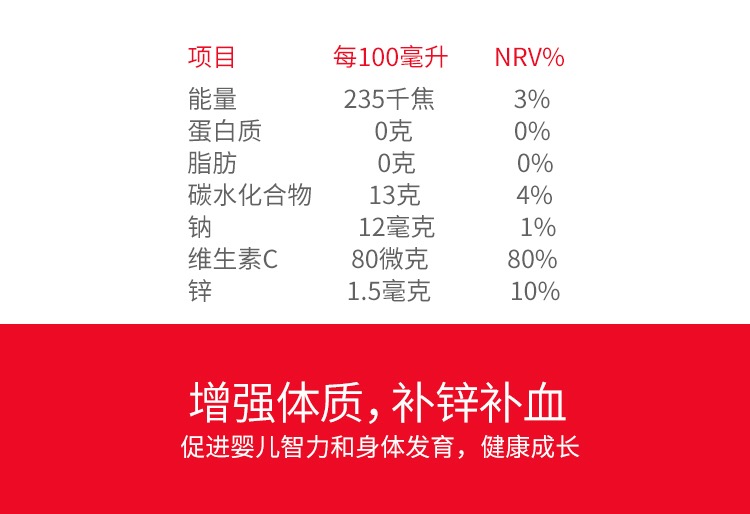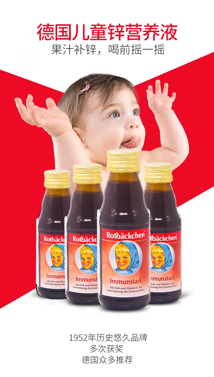 德国 小红脸颊 锌维他营养液 婴幼儿童补锌维生素C 锌补充液125ml