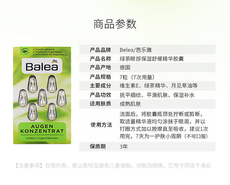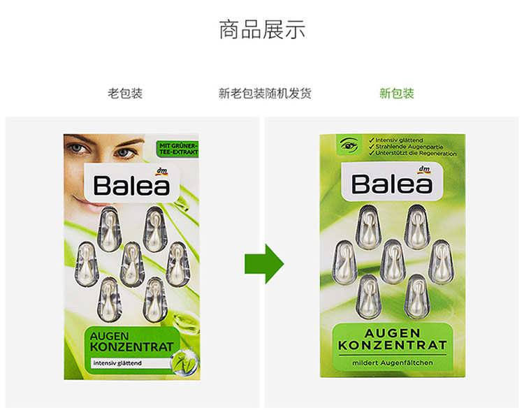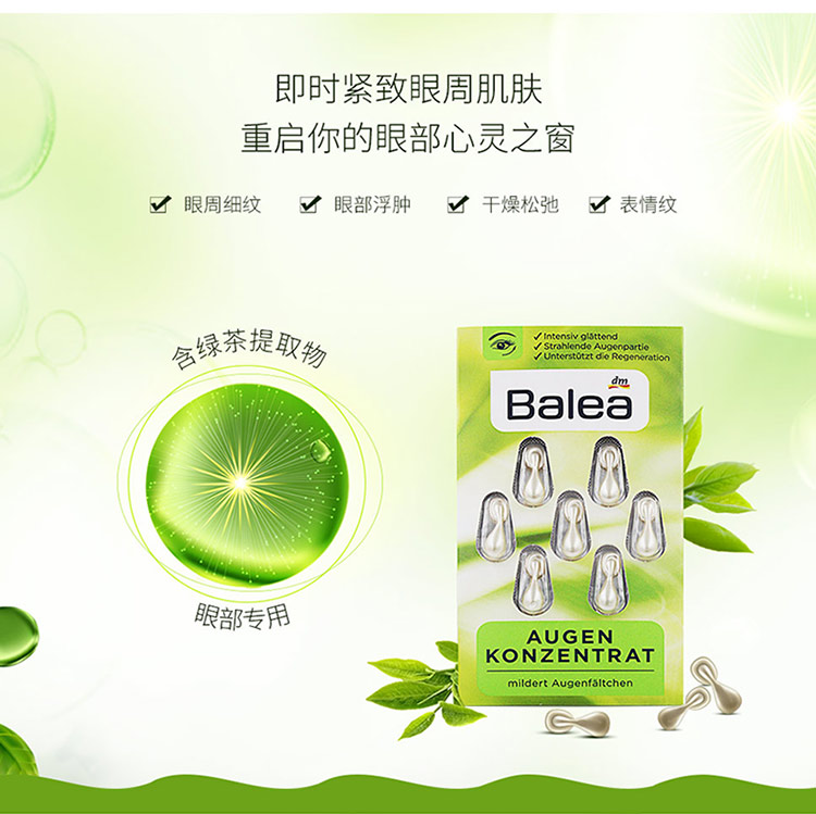 【荷兰直邮】Balea芭乐雅德国进口绿茶萃取精华素胶囊眼部护理紧致补水5粒