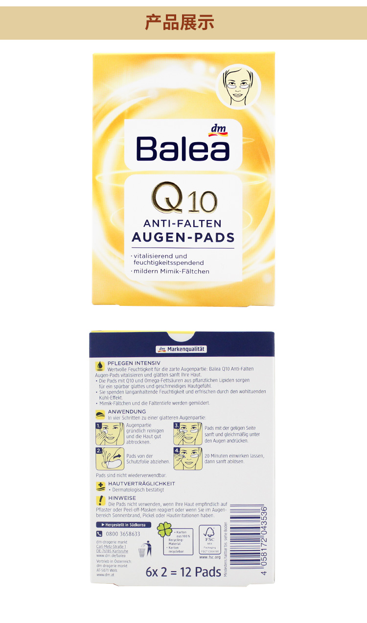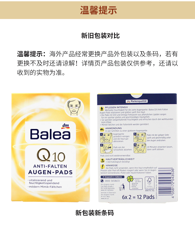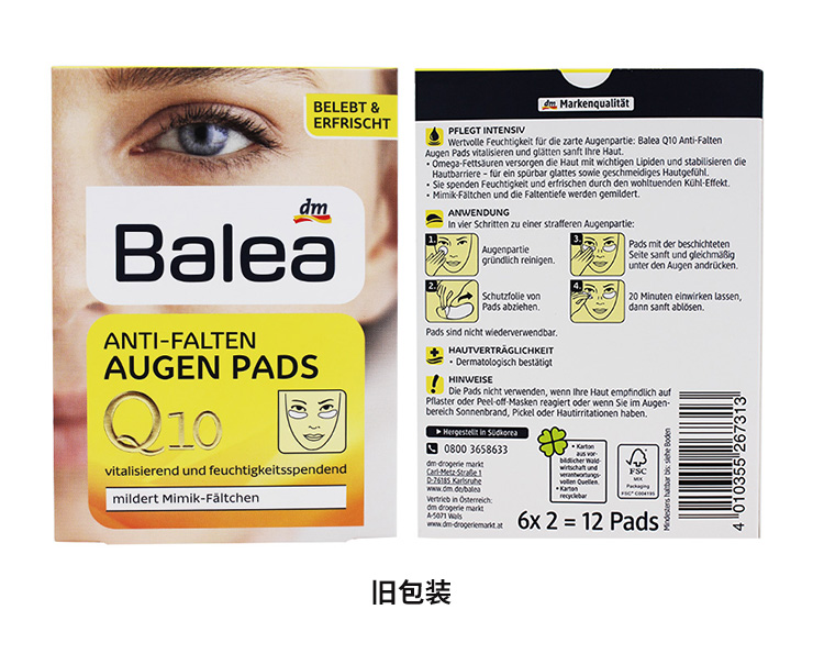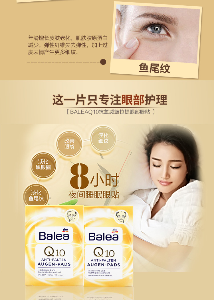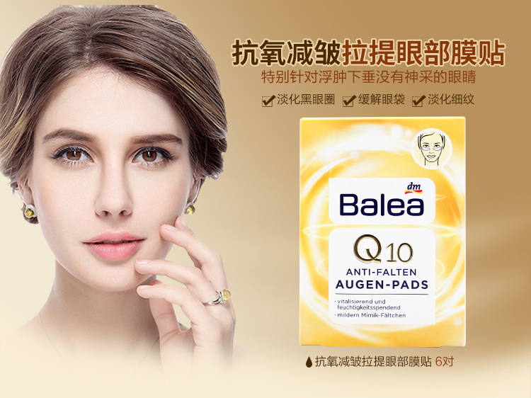 【荷兰直邮】Balea芭乐雅德国进口Q10抗氧抗皱拉提眼部膜贴滋养眼部精华6对