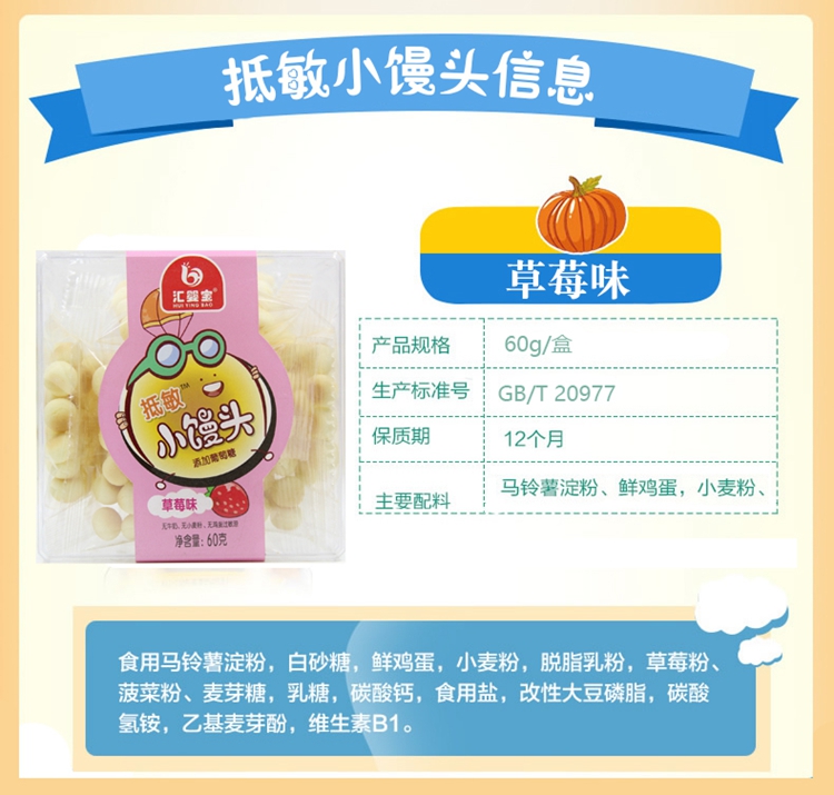 汇婴宝婴幼儿零食抵敏小馒头草莓味60g