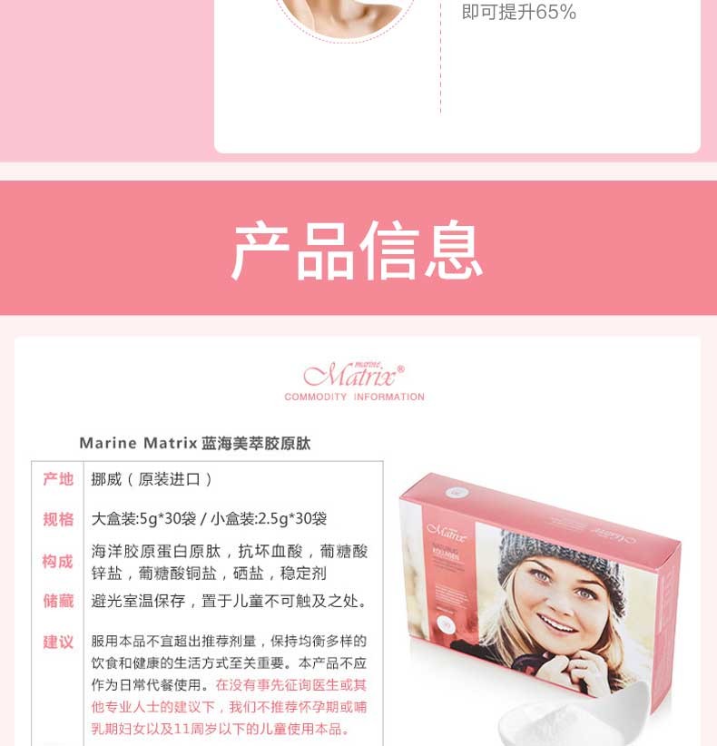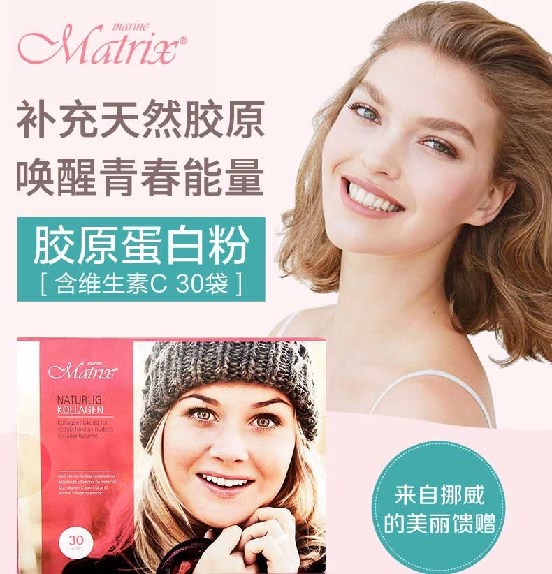 挪威Marine Matrix胶原蛋白肽粉美白祛皱产后妊娠纹修复含维他命C (5g*30袋)