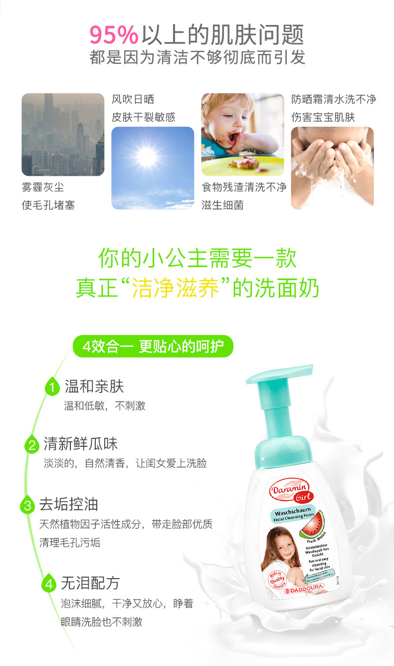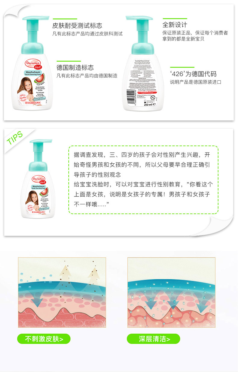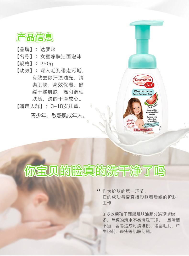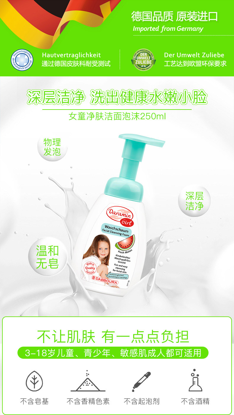 德国 达罗咪 女孩宝宝 洁面 泡沫 洗面乳250ml/瓶