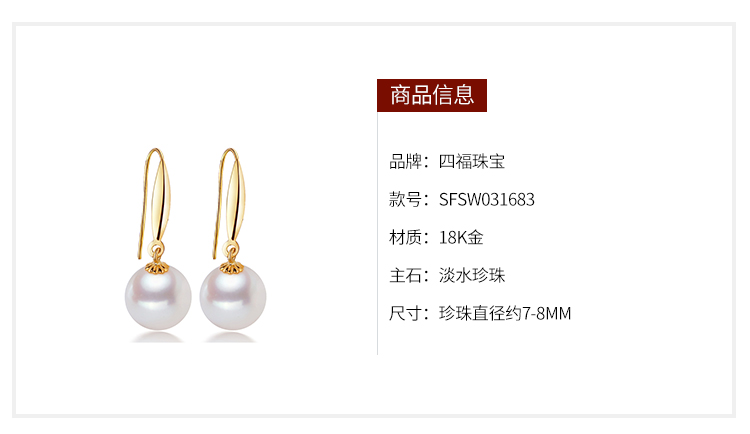 您所在的位置:首页 > 珠宝首饰  > 珠宝首饰 > 珍珠  > 四福珠宝 18K金圆形珍珠耳环时尚百搭珍珠耳钉耳饰