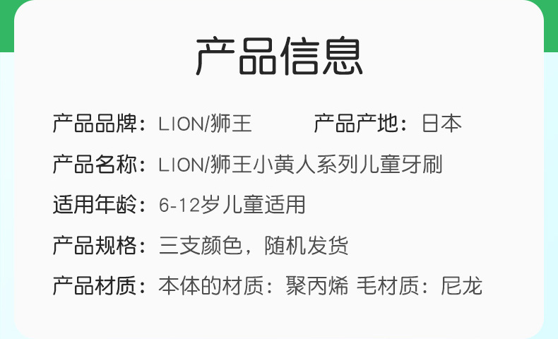 日本狮王儿童牙刷6-12岁