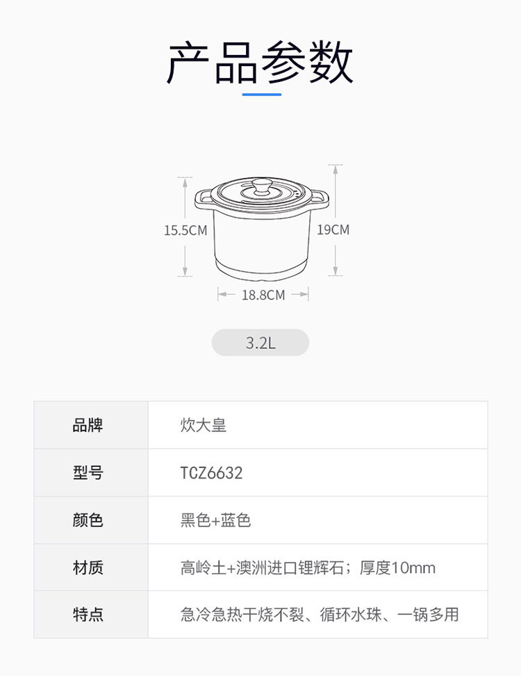 中国炊大皇(COOKER KING)卓玺陶瓷煲TCZ6632 3.2L