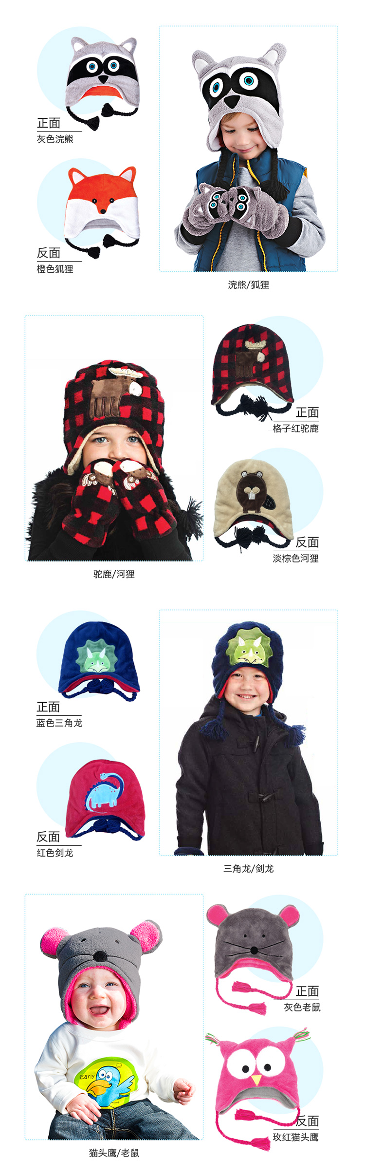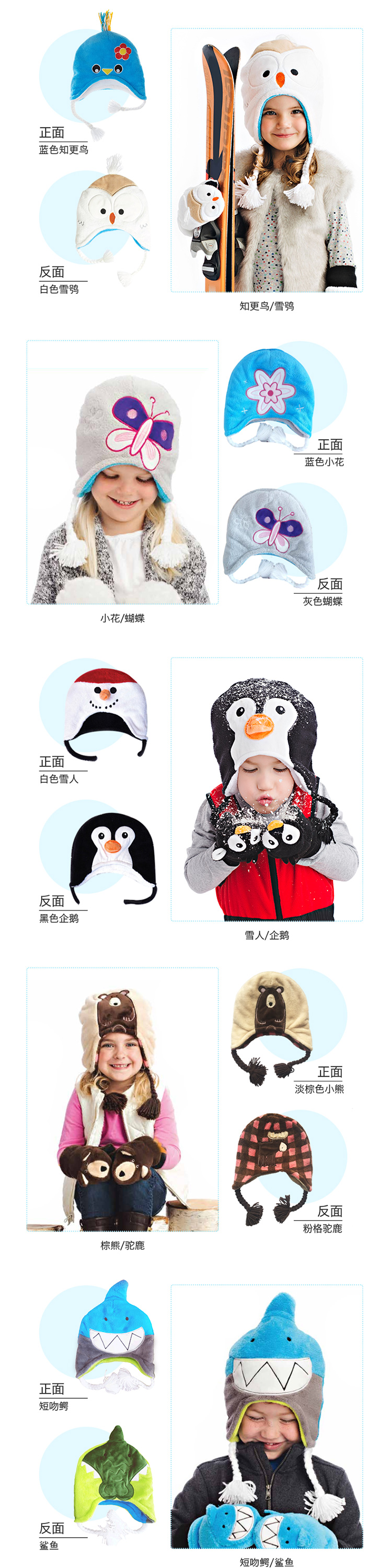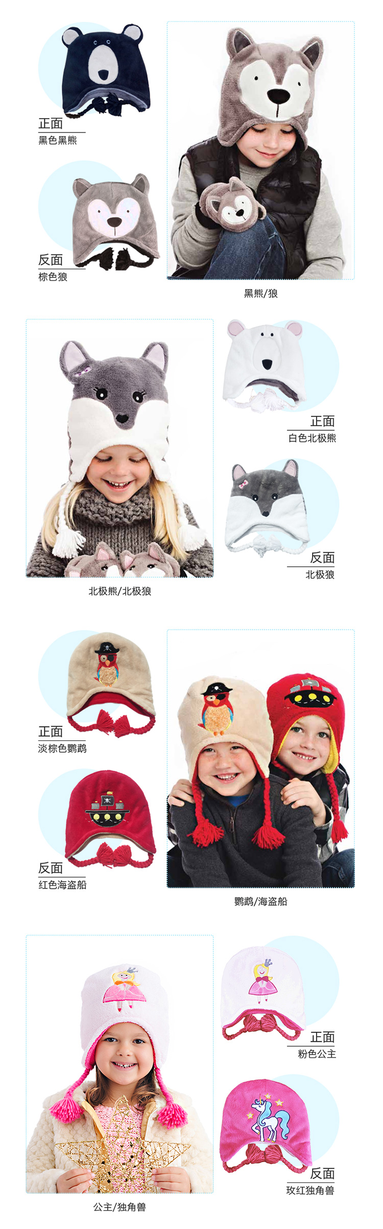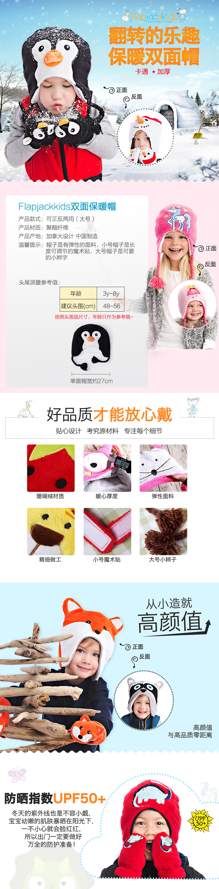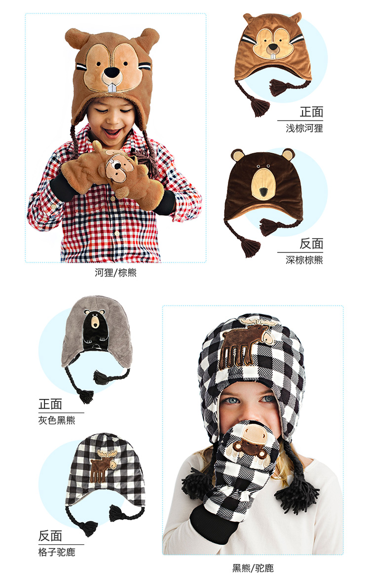 加拿大FlapjackKids双面冬季保暖帽 青蛙棕熊3-8岁