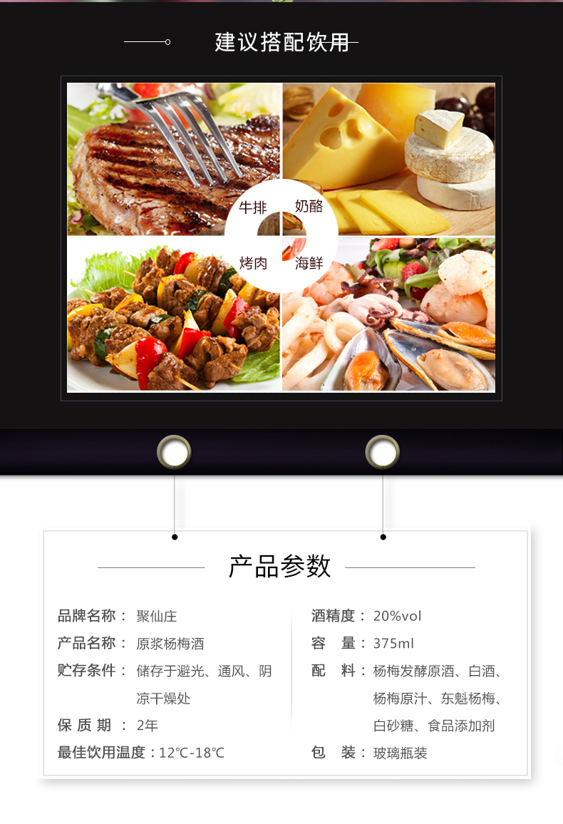 中国仙居聚仙庄原浆杨梅酒375ml两瓶装