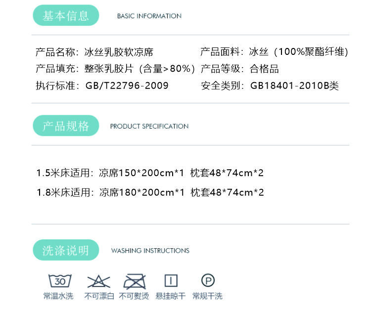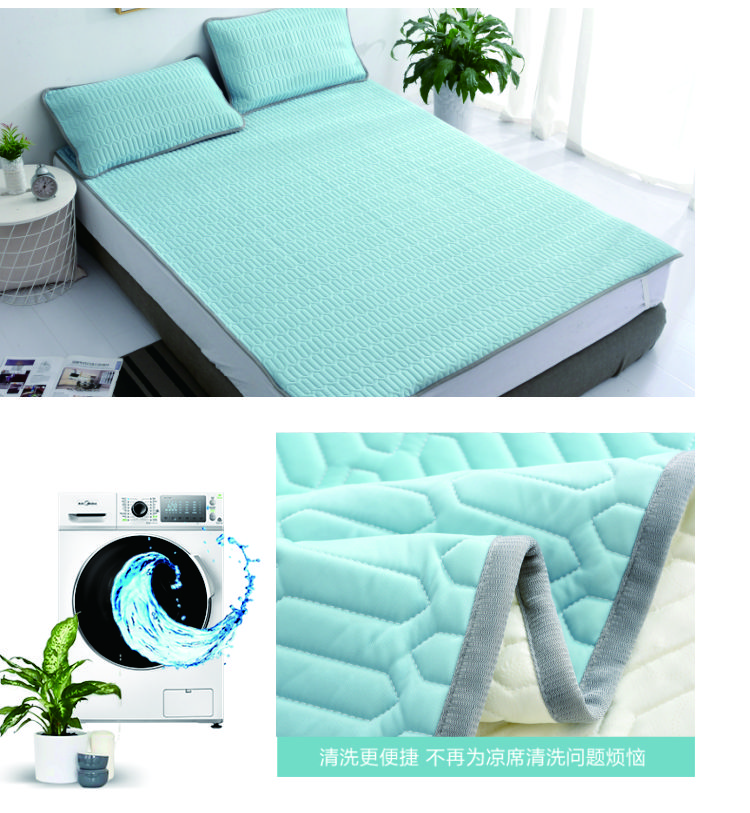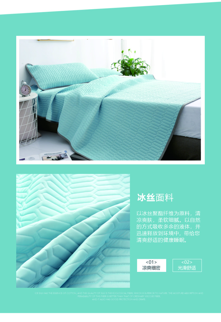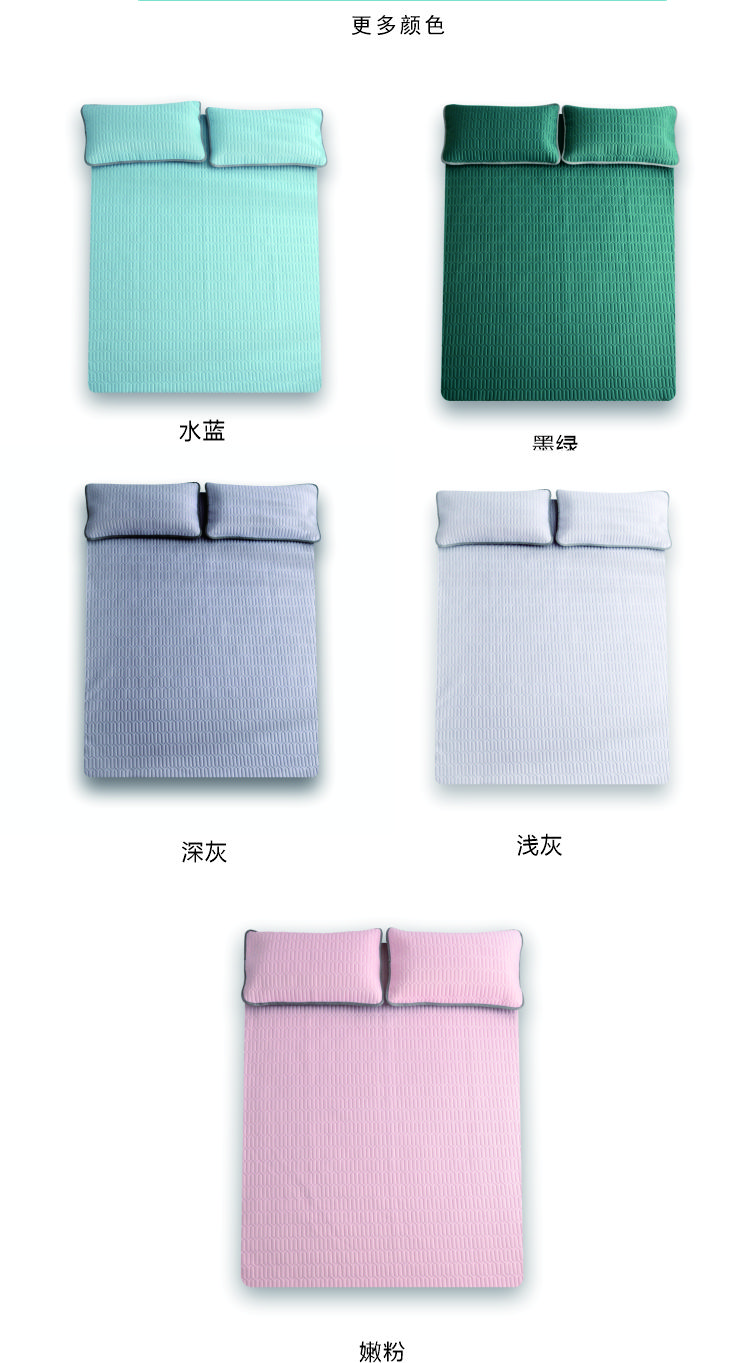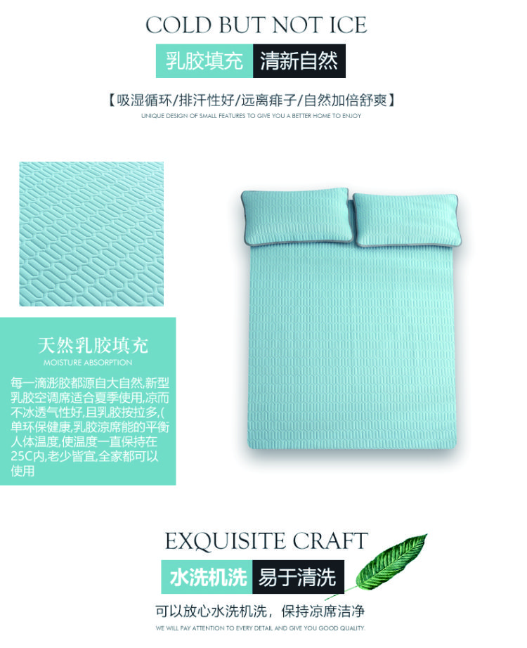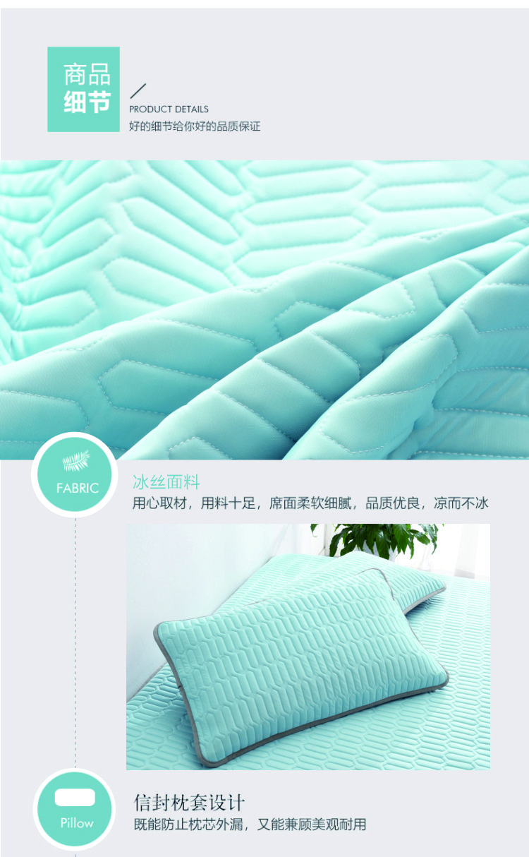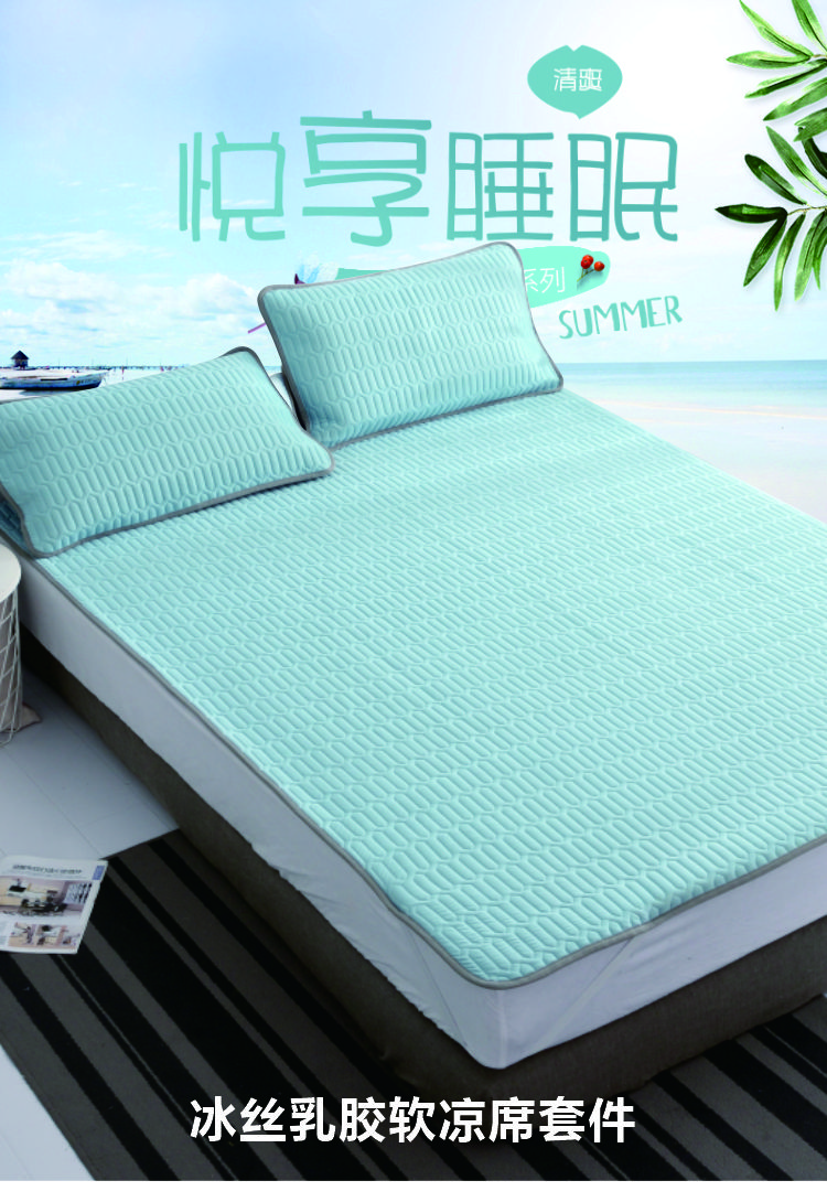 PNT纯色冰丝乳胶软凉席三件套 1.8m(6英尺)床 水蓝