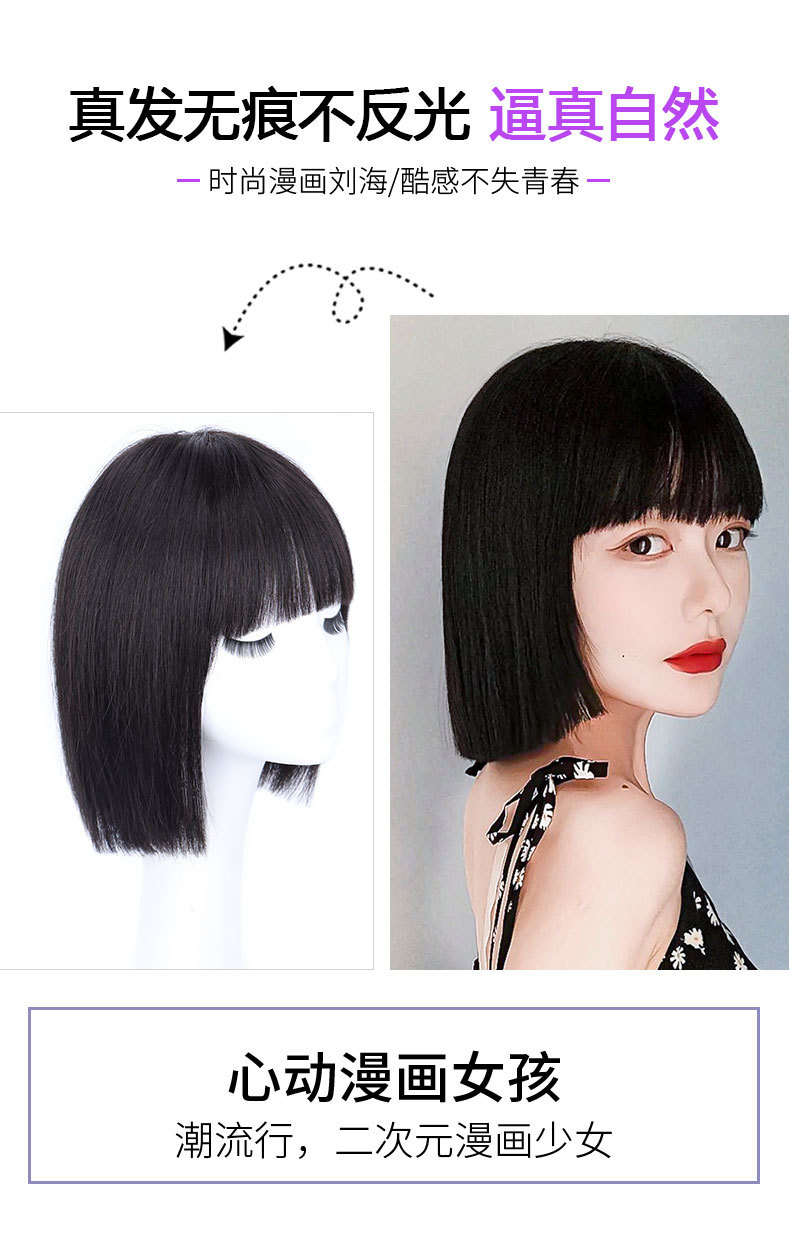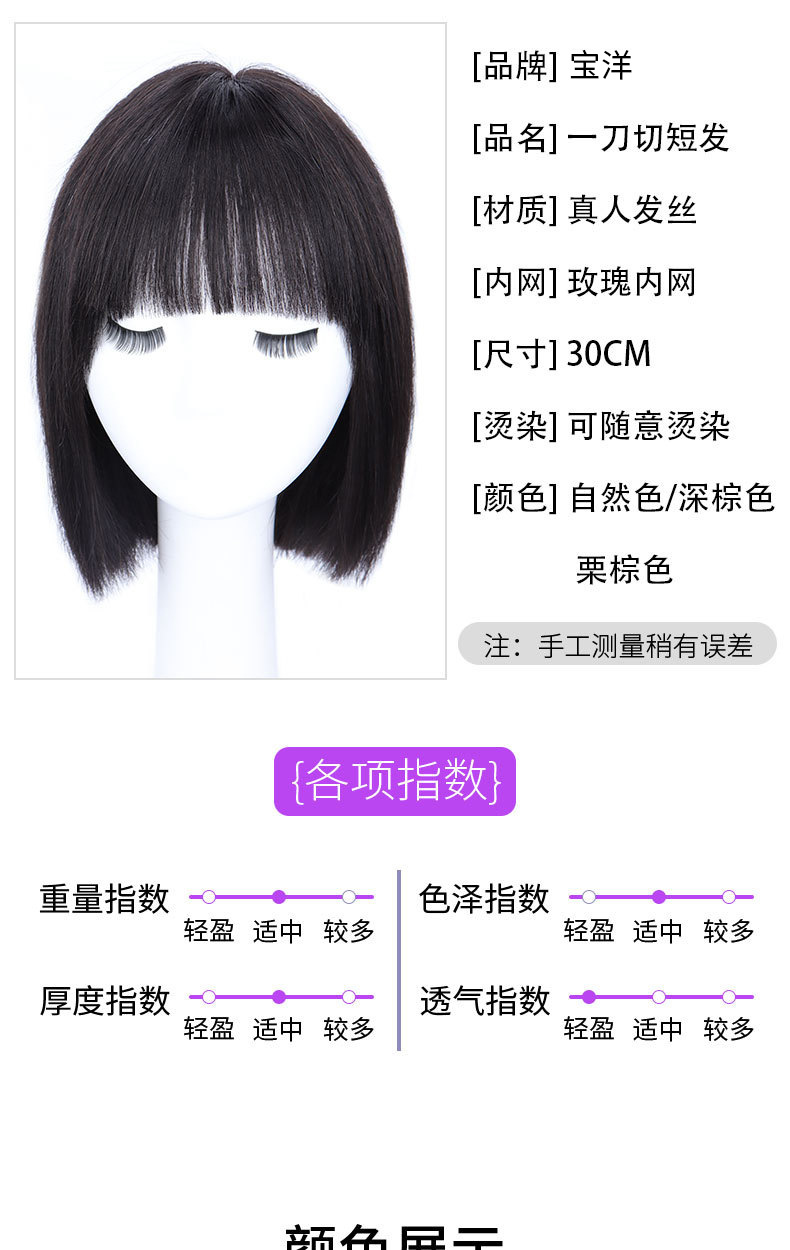 宝洋短发 一刀切锁骨短发 漫画刘海儿真人发 真发头套(下单备注颜色)