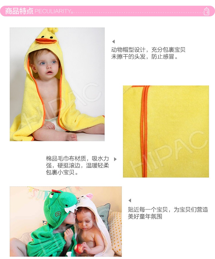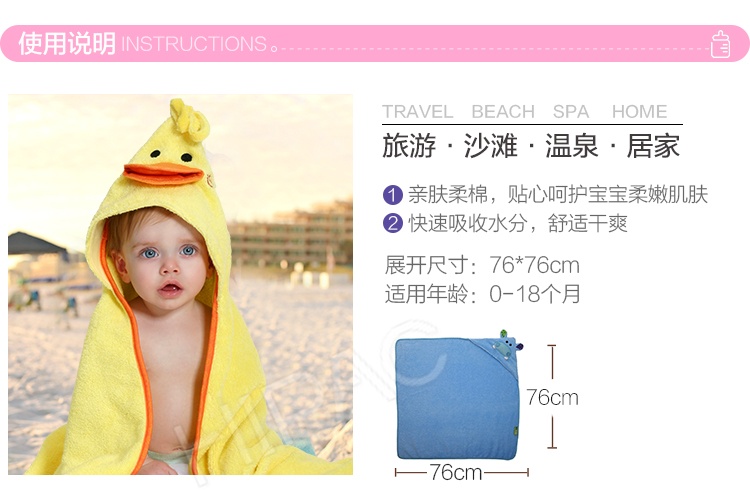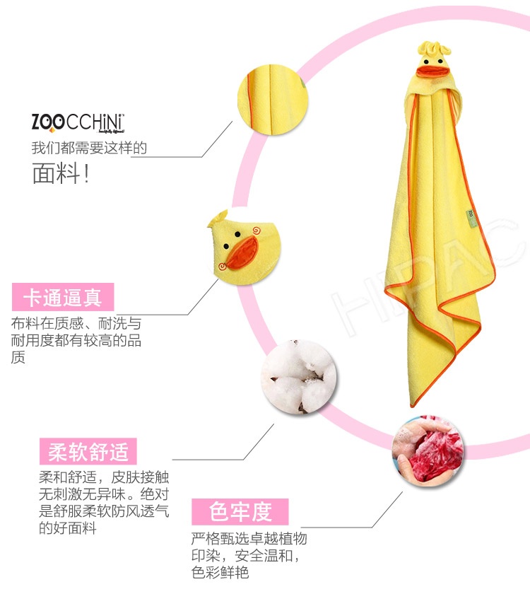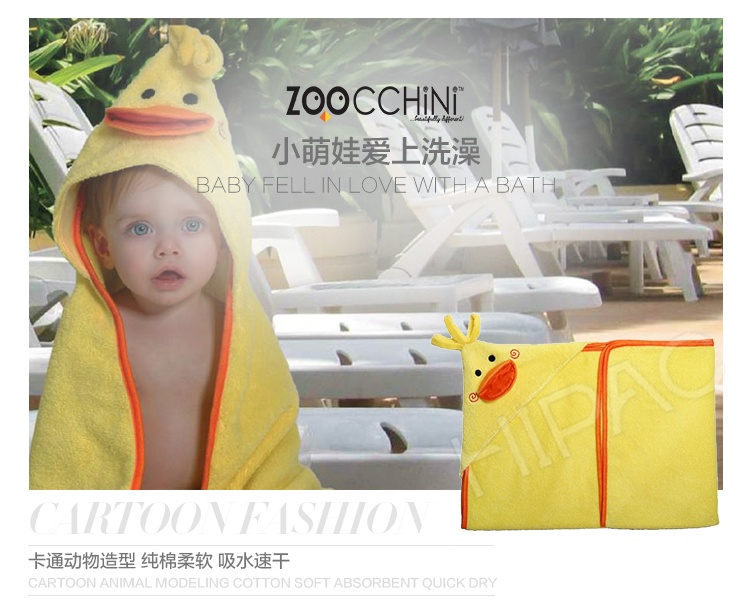 美国Zoocchini 纯棉婴儿连帽浴巾 小鸭布德