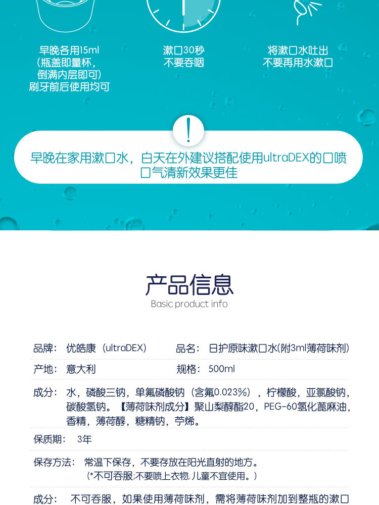 ultraDEX优皓康 薄荷味漱口水 500ml