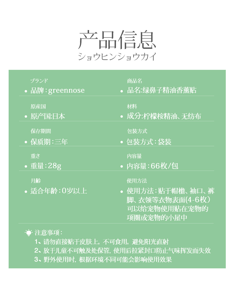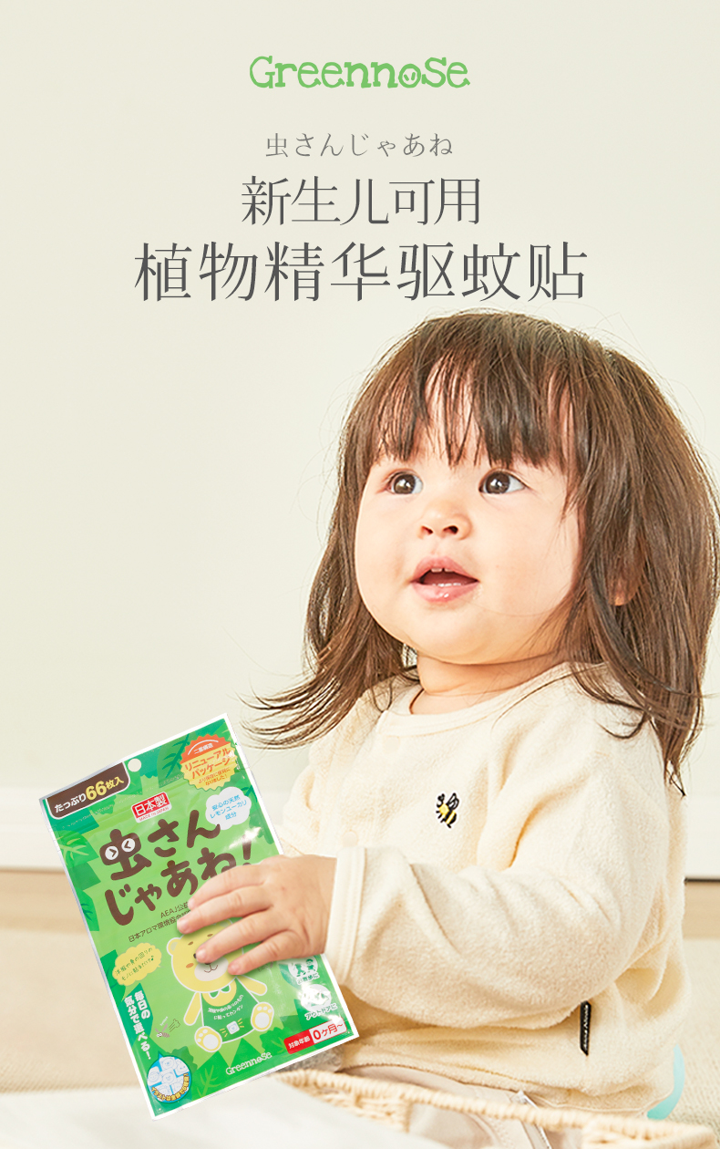日本greennose绿鼻子驱蚊贴66片宝宝婴儿童防蚊虫神器全家可用(66片)